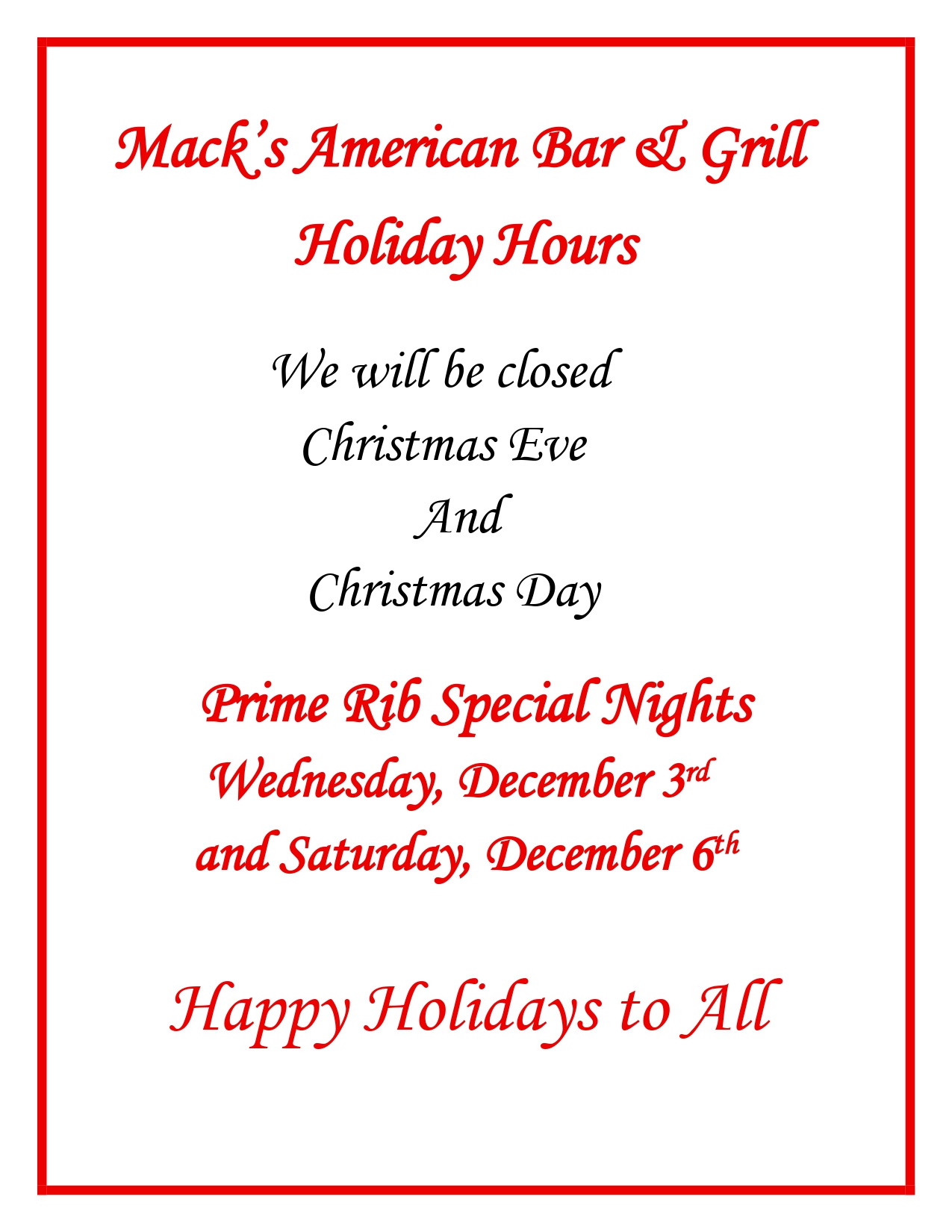 Thank you for your interest in Mack’s American Bar & Grill. Complete the form below to send us an email, or simply give us a call. We’re looking forward to working with you.
