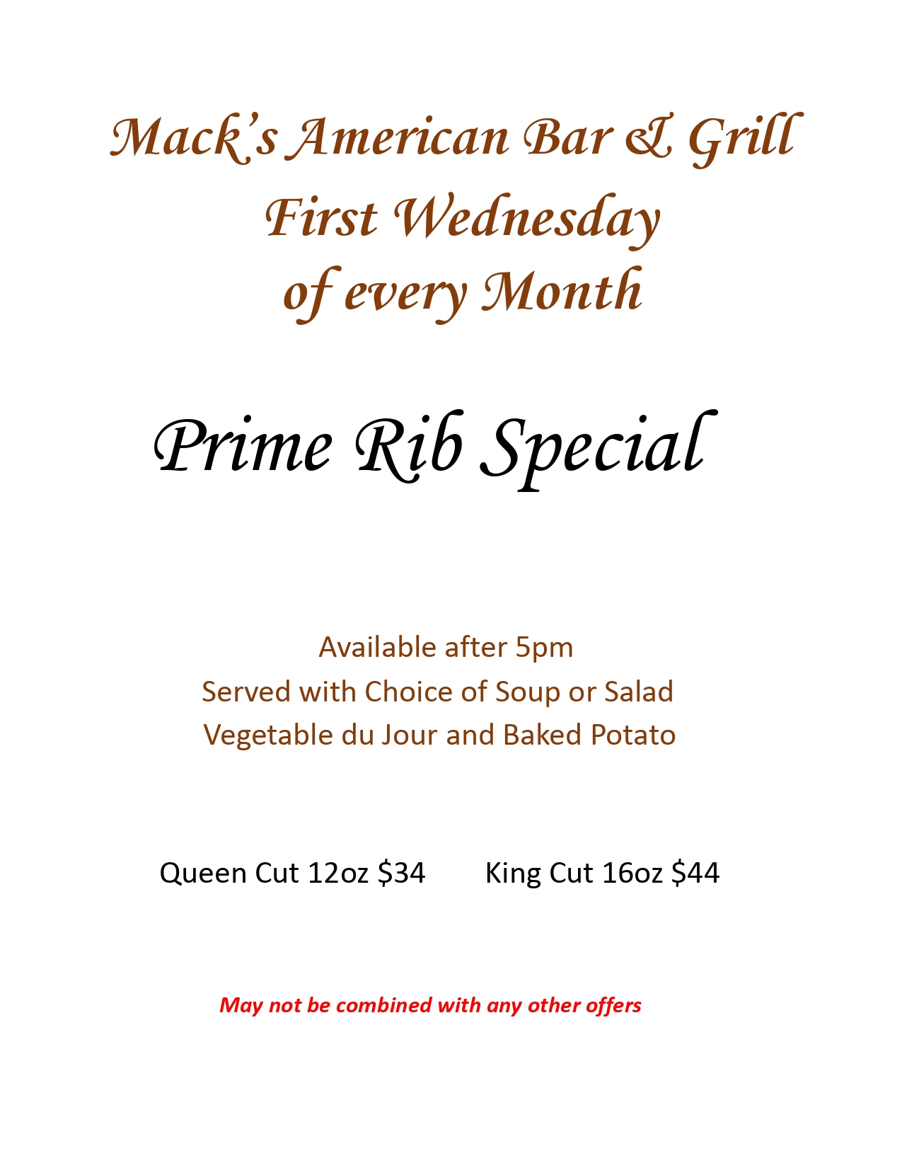 Thank you for your interest in Mack’s American Bar & Grill. Complete the form below to send us an email, or simply give us a call. We’re looking forward to working with you.